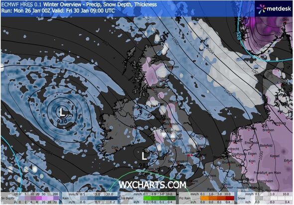Winter overview climate map for January 30 (Picture: WXCharts)