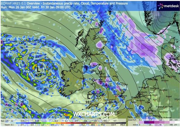 Precipitation overview climate map for January 30 (Picture: WXCharts)