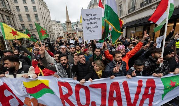 Kurdish folks around the globe have been protesting in opposition to the assaults in Syria (Picture: Getty )