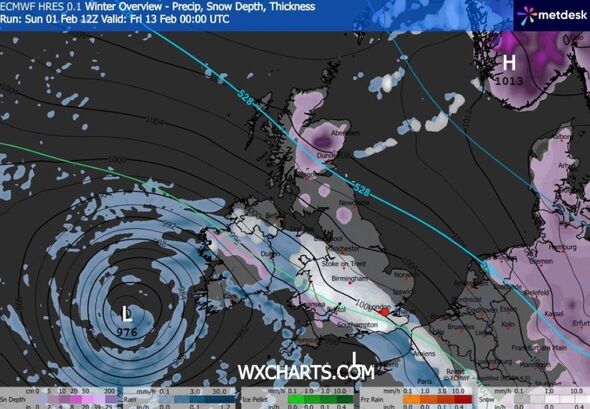 February 13 could possibly be a snowy day for a lot of areas of the UK (Picture: WXCharts)