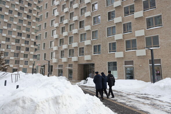 Russian police exterior the Moscow condominium block the place Lt Gen Vladimir Alekseyev was shot (Picture: Getty)