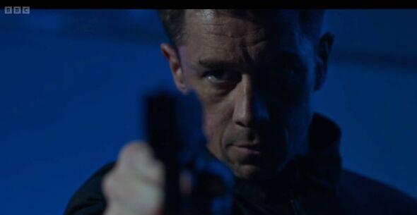 In harrowing and distressing scenes, the murderer shot useless Isaac on stage (Picture: BBC/Common Worldwide Studios/Laurence Cendrowicz)