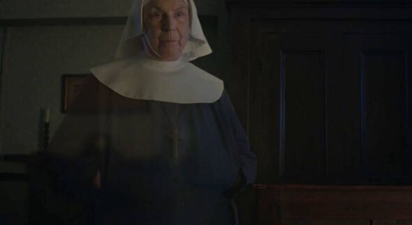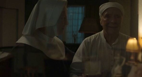 Sister Evangelina was again in ghost kind as she gently guided Sister Monica Joan’s spirit (Picture: bbc)