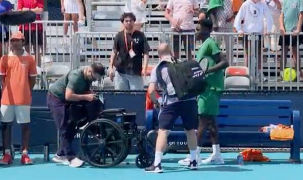 The coach introduced a wheelchair to the courtroom however Moise Kouame walked off himself (Picture: Tennis TV)