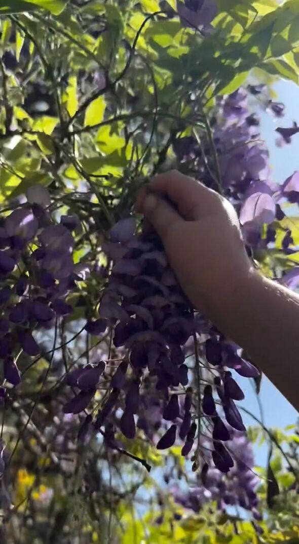 Meghan’s flower association may very well be seen within the second snap, adopted by a video, seemingly taken by one in all their youngsters, displaying child fingers choosing purple leaves from a flowering tree.
