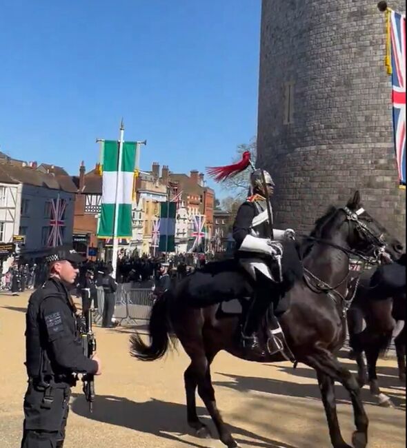 One of many horses throughout immediately’s march previous in Windsor for the official Nigerian welcome to the UK seemed to be uncontrolled forward of the carriage procession to Windsor Fortress. Simply earlier than the King and his particular friends arrived to examine the Guard of Honour, one of many horses outdoors the citadel started to misbehave, giving its rider a tough time as they started the route.