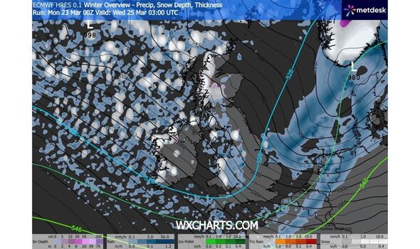 Rainfall can also be anticipated on March 25 (Picture: WXCharts)