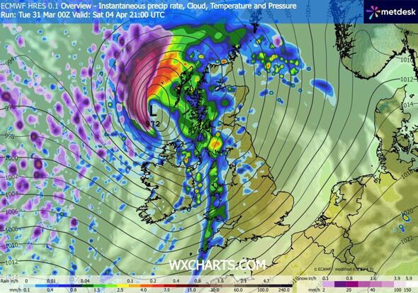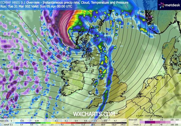 Rain storms are set to lash the nation on April 4 and 5, in keeping with new charts (Picture: WXCharts)