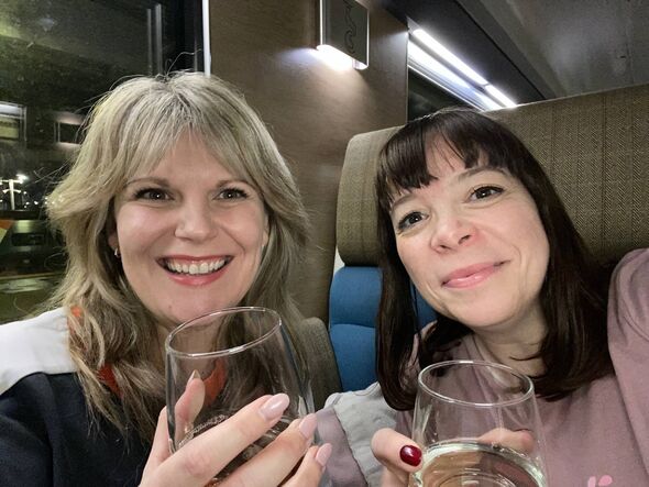 Jane and her good friend within the restaurant automotive of the Caledonian Sleeper (Picture: Jane Lavender/Attain PLC)