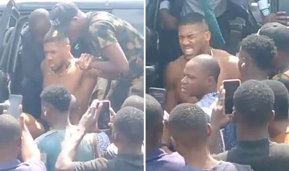 Anthony Joshua winced in ache after being hauled out of the automotive (Picture: X)