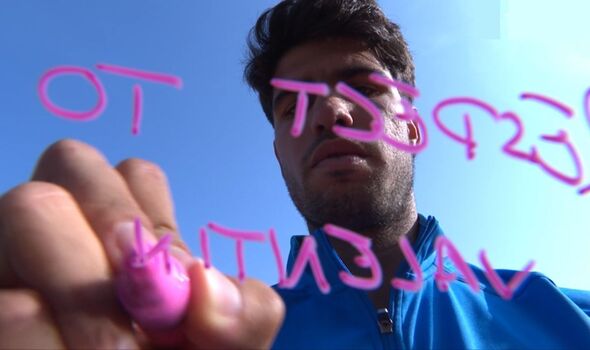 Carlos Alcaraz wrote ‘respect to Valentin’ on the digital camera lens after beating Valentin Vacherot (Picture: Tennis TV)