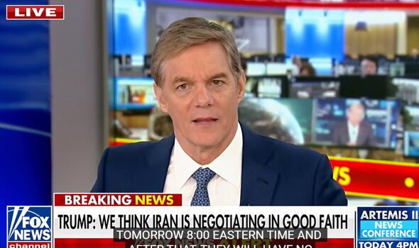 US correspondent Griff Jenkins paused his broadcast on Tuesday to ship an replace on Trump’s latest cellphone name as he addressed the upcoming deadline. He commented: “Lower than 12 hours away, the president threatening to wipe out Iran’s whole civilisation except they comply with reopen the Strait of Hormuz and get nuclear improvement on it is programme.”