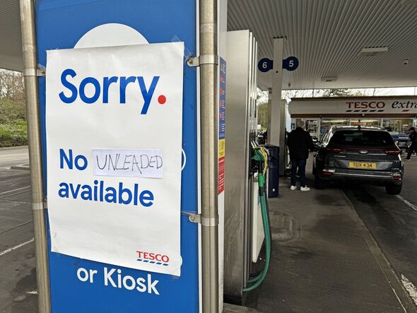 Signal telling motorists that there isn’t a unleaded petrol obtainable at a Tesco gasoline station in Essex (Picture: Getty)