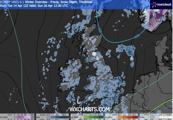 Knowledge from WXCharts.com signifies a bitter chilly blast sweeping throughout the north of the UK on Friday, April 24.