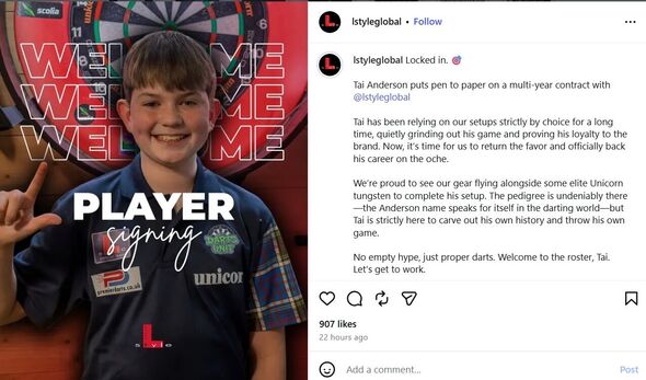Tai Anderson has already made his presence felt on the oche within the Junior Darts Company, and Anderson Sr has already revealed that he hopes to face his son at Ally Pally earlier than he retires. And regardless of his tender age, Tai seems to be on the proper trajectory, having agreed a long-term partnership with L-Model.