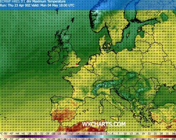 Nonetheless, these in northern England will miss out on the sunshine with the mercury solely anticipated to succeed in 14C, in Scotland lows of 10C are doable, the maps counsel.