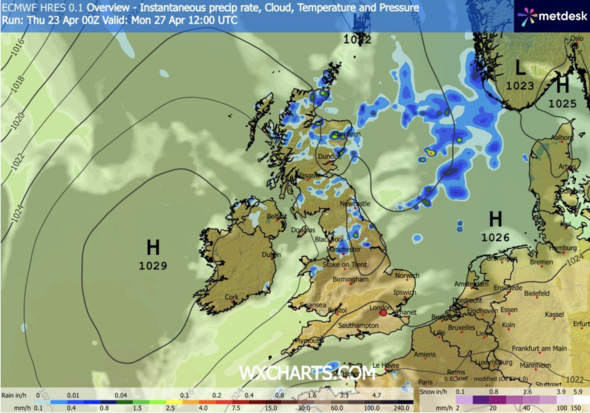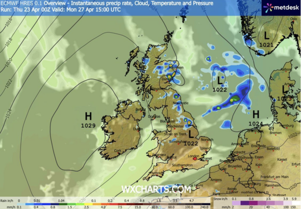 Climate Overview map for Monday April 27 (Picture: WXCharts)