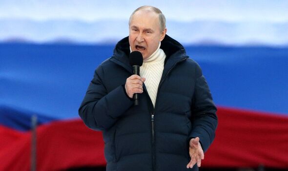 Vladimir Putin ranting at a crowd in Moscow (Picture: Getty)
