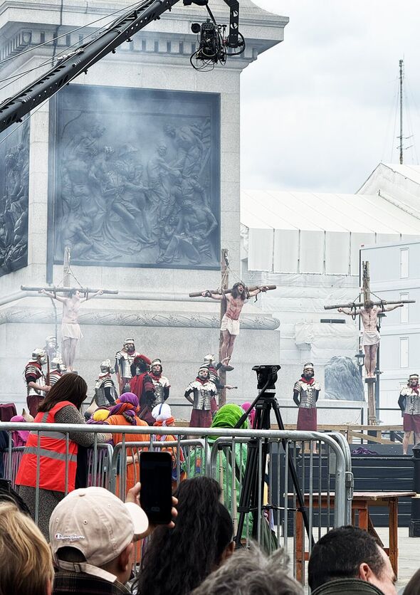 The Ardour of Jesus, a stay play carried out in Trafalgar Sq. reenacting the crucifixion and resurrection of Christ at…