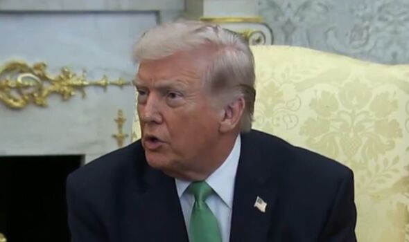 Donald Trump’s press secretary Karoline Leavitt spoke to press outdoors the White Home. Trump was humiliated on stay TV (Picture:…
