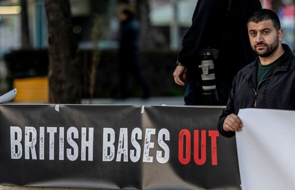 Protesters chant, ‘Say it loud, say it clear, British bases out of right here’, on the streets of Nicosia.