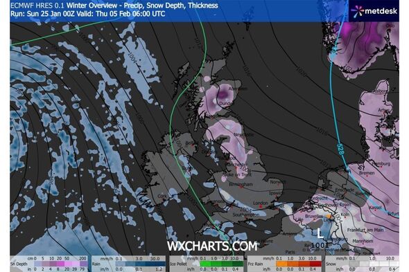 The cruel climate situations are anticipated early February. Snow is anticipated on February 8 (Picture: WXCharts) New climate maps reveal…